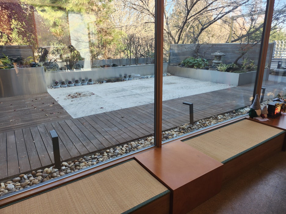 웨이팅을 한 사람들은 앞에 보이는 것처럼 편안하게 앉을 수 있는 공간에 앉아 여유롭게 기다릴 수가 있었는데요. 봄이 오는 지금 같은 경우는 창 밖으로 보이는 푸릇푸릇한 광경을 구경하며 시간을 보낼 수 있었습니다.