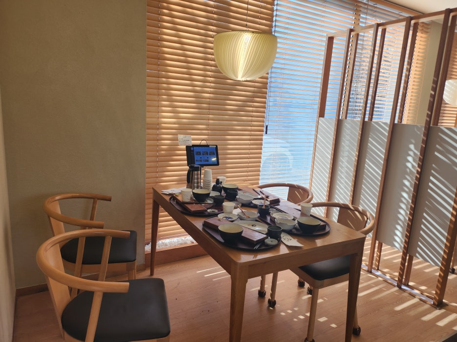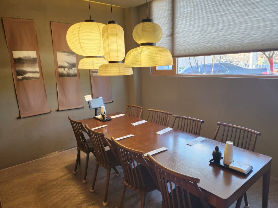 많은 인원이 스시센스를 함께 방문할 때라면 위의 사진에 보이는 것처럼 타인이 앉을 수 있는 테이블을 이용하는게 좋을 것 같았는데. 이 테이블은 격실로 되어 있어서 외부 테이블과 분리된 격실을 사용하고 있기 때문에 간단한 회식이나 점심 식사를 즐길 때 이용하면 좋을 것 같다는 생각이 들었습니다.