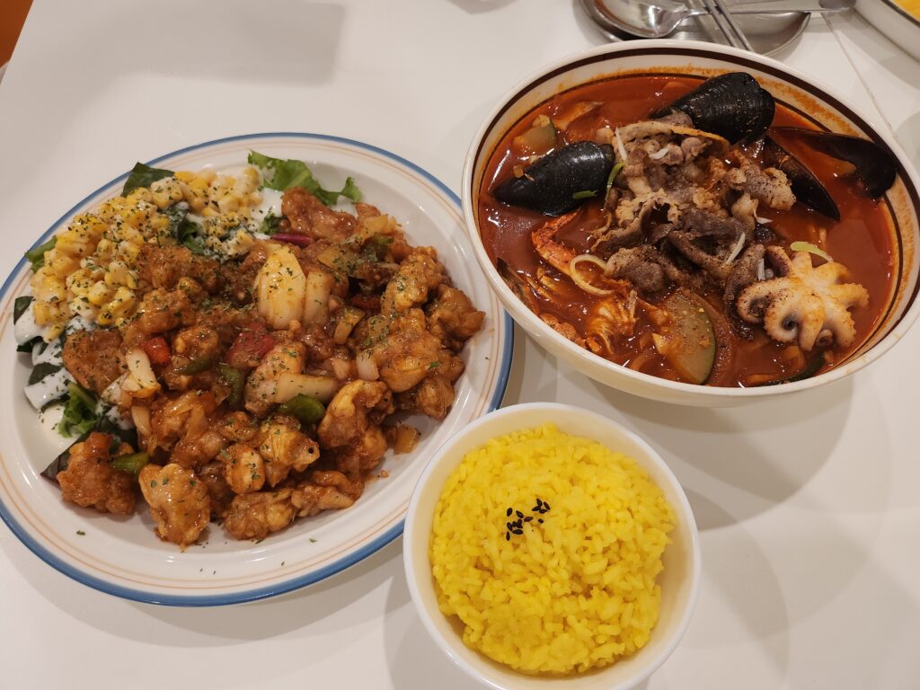 저희가 고민 끝 주문했던 메뉴는 차돌해물짬뽕과 깐풍기&샐러드 메뉴였는데, 공기밥은 개인적으로 담는 형태가 아닌 주문을 하면 가져다주는 형태로 운영이 되고 있었습니다.