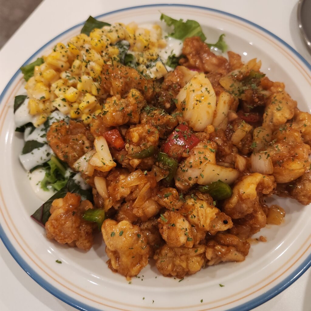 깐풍기 & 샐러드는 달달하면서 은은한 매콤함을 느낄 수 있는 매력있던 메뉴로 크기는 한 입에 먹을 수 있을 정도로 작은 크기로 만들어져있었습니다. 샐러드는 약간의 억센 샐러드류와 옥수수로 깐풍기를 먹기 전 잠깐 즐기기는 좋으나 소스의 맛이 강해서 같이 먹기에는 아쉬운 기분이 들기도 했습니다.