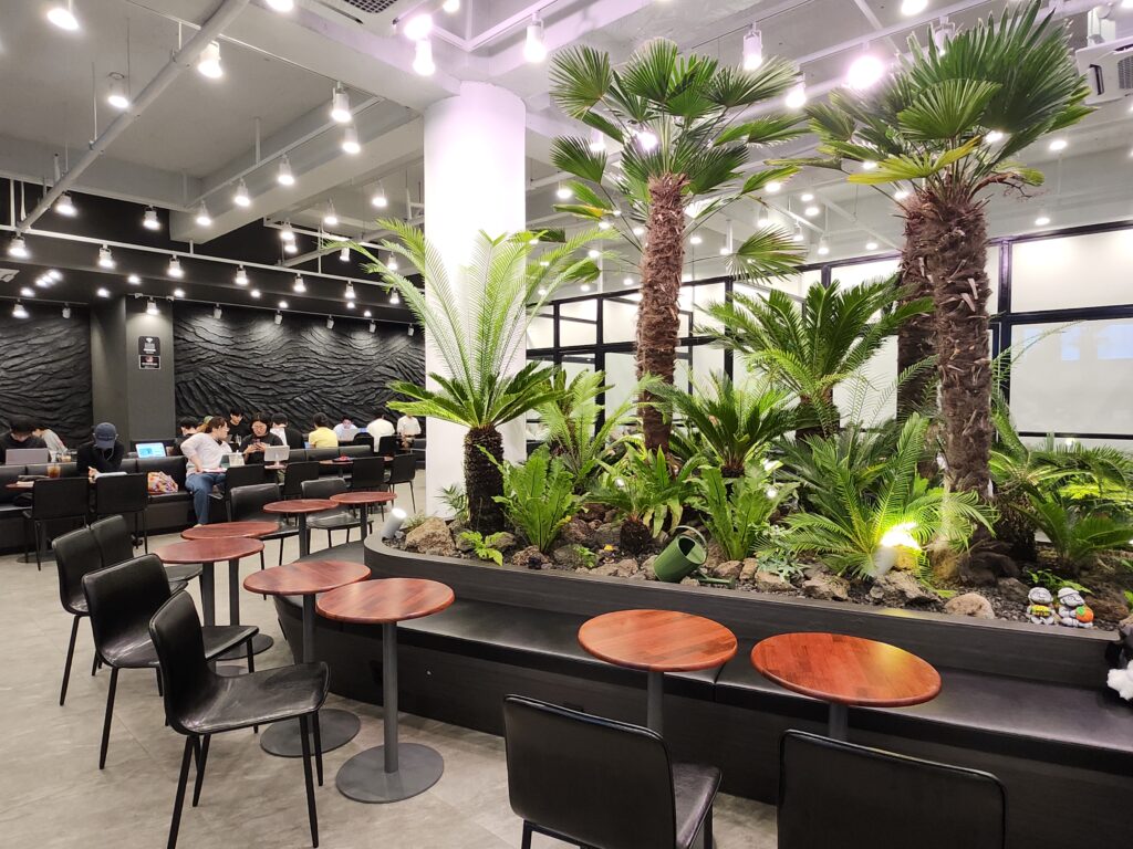 대구 24시카페 에어바우트커피는 면적이 상당히 넓고, 층고가 넓은 카페로 이용하는 동안 자연스럽게 편안함을 정말 크게 느낄 수 있는 카페로 공부를 하는 중간에 카페 중앙을 바라보면 마치 제주도에 온 듯한 잠깐의 휴식을 취할 수 있어서 좋았고, 카페 매장 전체에서 시트감이 좋은 의자를 이용 할 수 있어서 장시간 이용해도 좋을 것 같다는 생각이 들었습니다.