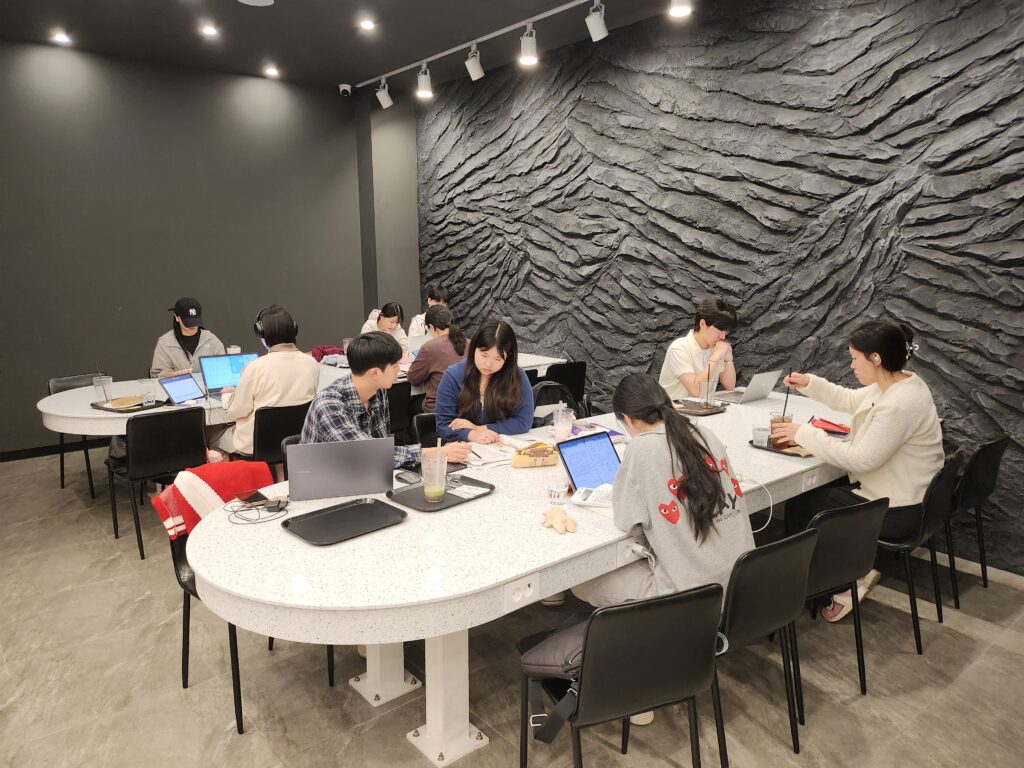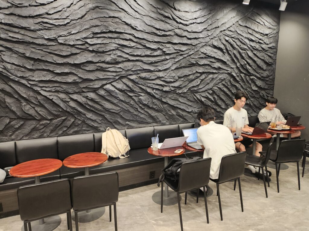 두번째 자리는 과제를 하거나 많은 사람들이 함께 방문해서 이용하기 좋았던 자리로 약 12명 정도의 인원이 한 번에 이용할 수 있으며 콘센트가 자리마다 붙어있어서 이용할 때 편할 것 같은 느낌이 들었고, 앞선 자리보다는 많은 자리를 이용 할 수 있어서 더욱 편안함을 느낄 수 있었습니다.
