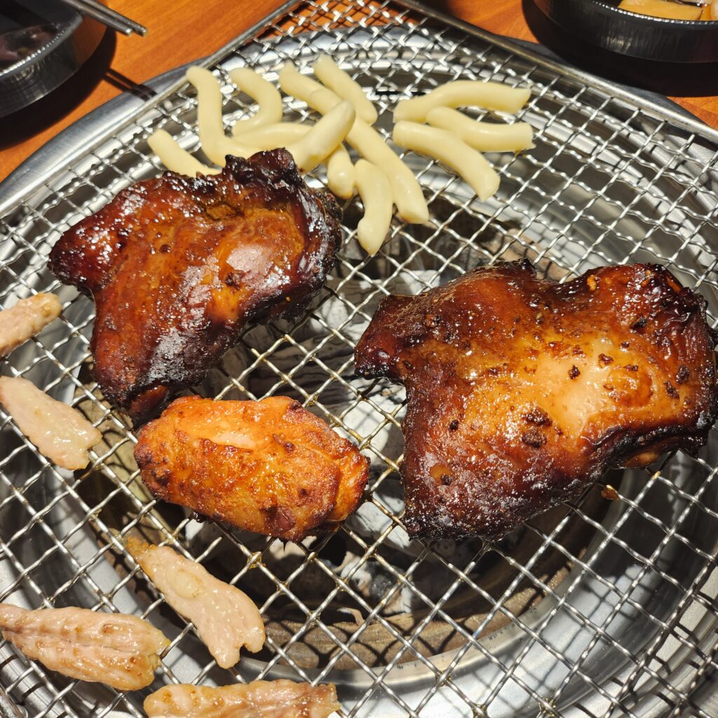 이 떡은 치즈떡이 아닌 일반 떡으로 숯에 구워지는 순간 다시 떡 특유의 식감이 살아나서 먹는 즐거움이 있었고, 초벌 되어 나오는 닭구이가 나오기 전까지 입이 심심하지 않게 큰 도움을 주기도 했습니다.