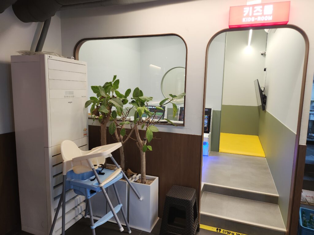 이 방에서는 TV 프로그램을 자유롭게 즐겨볼 수 있는데, 아이를 혼자두면 불안할 수 도 있지만 식사를 하는 공간 바로 옆에 위치하고 있다는 점과 오히려 아이들이 지루해하지 않아서 좀 더 편하게 기다릴 수 있다는 점 등의 매력이 있어 키즈룸이 더욱 빛나는 것 같은 기분이 들었습니다.