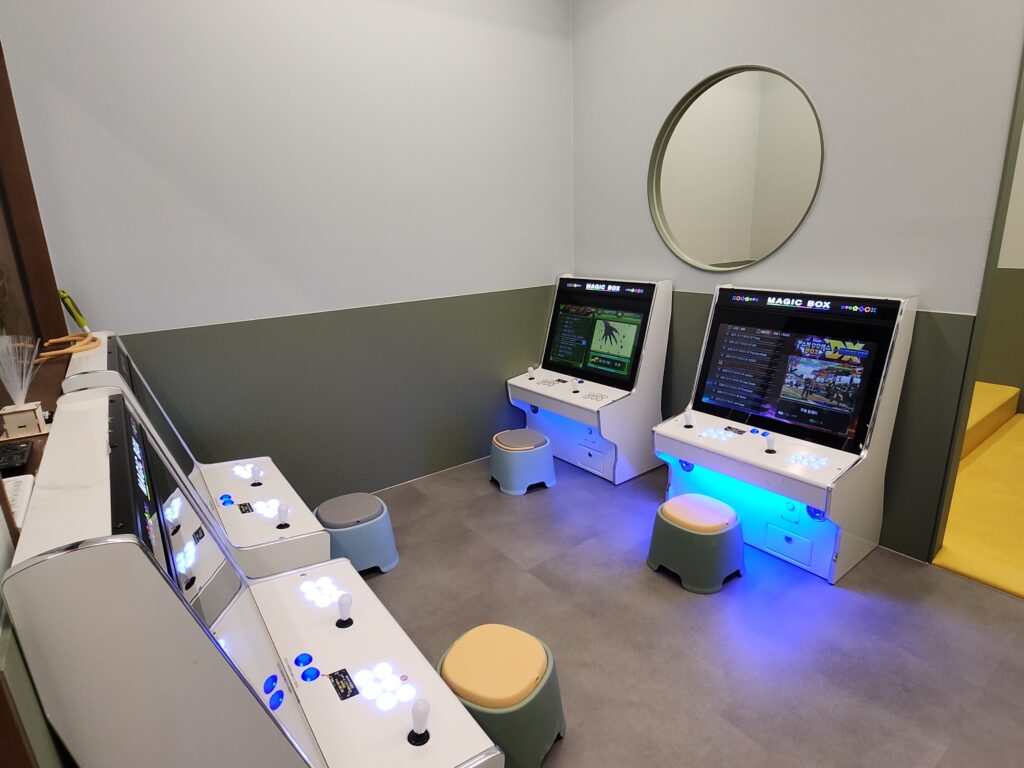 키즈룸의 내부시설에는 어린시절 모두 즐겼던 게임기가 4종이 있고 더 안쪽으로 이동하면 푹신푹신한 쿠션감이 있는 방을 만나볼 수 있습니다.