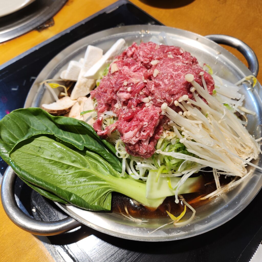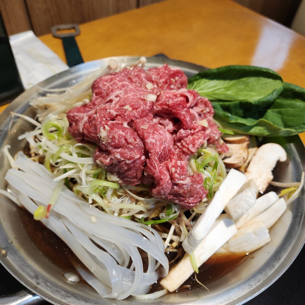 반찬을 어느정도 즐기고 있자 금상의 메인이라고 할 수 있는 한우불고기의 모습을 잇따라 볼 수 있었는데, 기본적으로 구성은 숙주, 당면, 파채, 버섯, 한우불고기로 되어있었으며 약 5~10여분을 끓여서 먹을 수 있도록 준비되어 올라왔습니다.