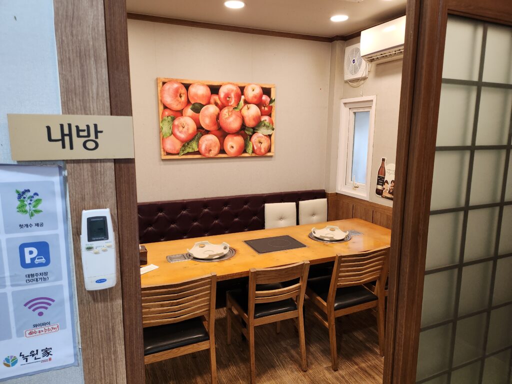 고령맛집 녹원가는 기본적으로 사진과 같이 룸과 홀 형태의 장소에서 식사를 할 수 있는데, 테이블은 4명이 앉기 좋은 테이블 그리고 8명까지 앉을 수 있는 테이블이 주로 이루고 있어서 데이트로 고령을 방문하는 사람은 물론 가족 단위의 손님들도 편안하게 식사를 할 수 있다는 것이 장점이었습니다.