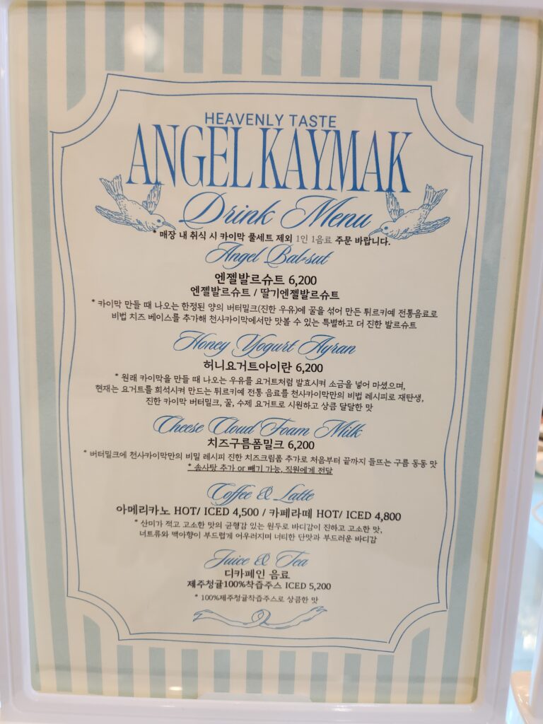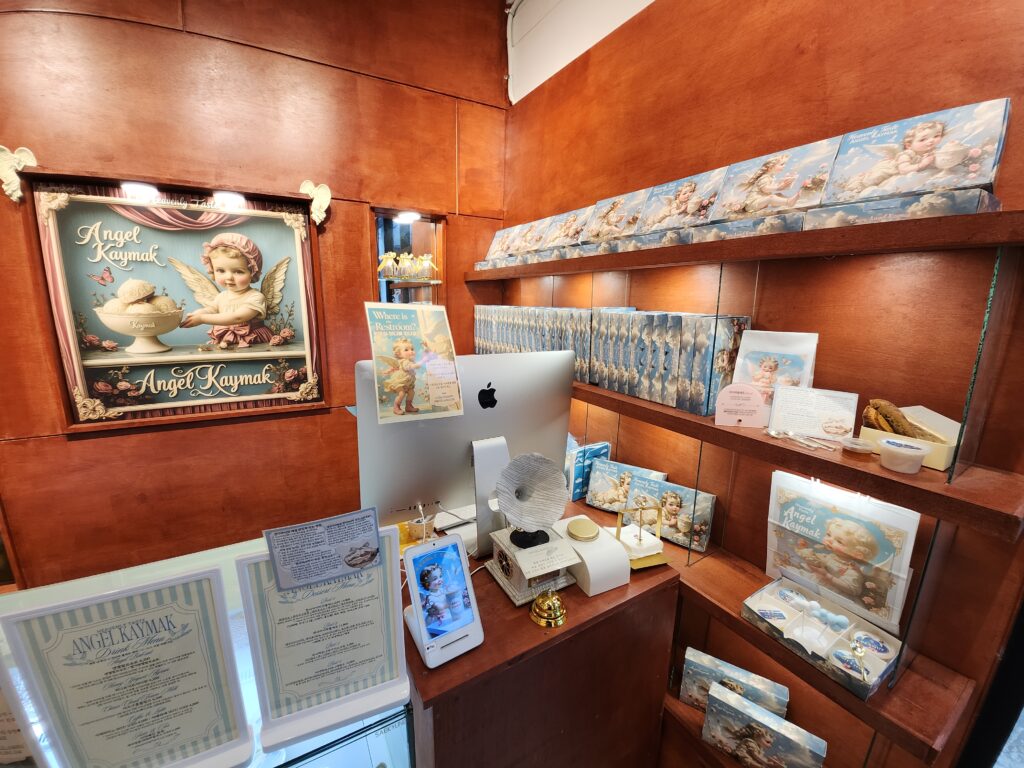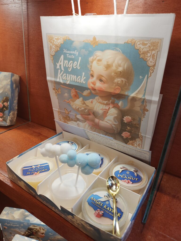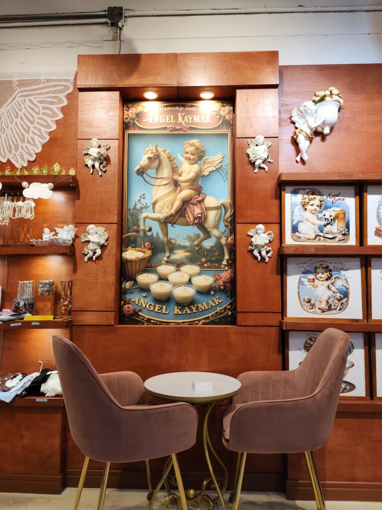 천사카이막을 주문하기 위해 카운터로 다가서서 주변을 둘러보자 그 생각은 한 번 더 들었는데요. 선물용 포장 박스, 그리고 천사 카이막이 그려진 각종 그림들, 음식을 먹을 때 맛있게 먹는 방법이 적힌 종이까지 감성을 자극하지 않는 부분이 하나도 없었고 그야말로 감성이 흐르는 강에 온 듯 한 기분이 들기도 했습니다.