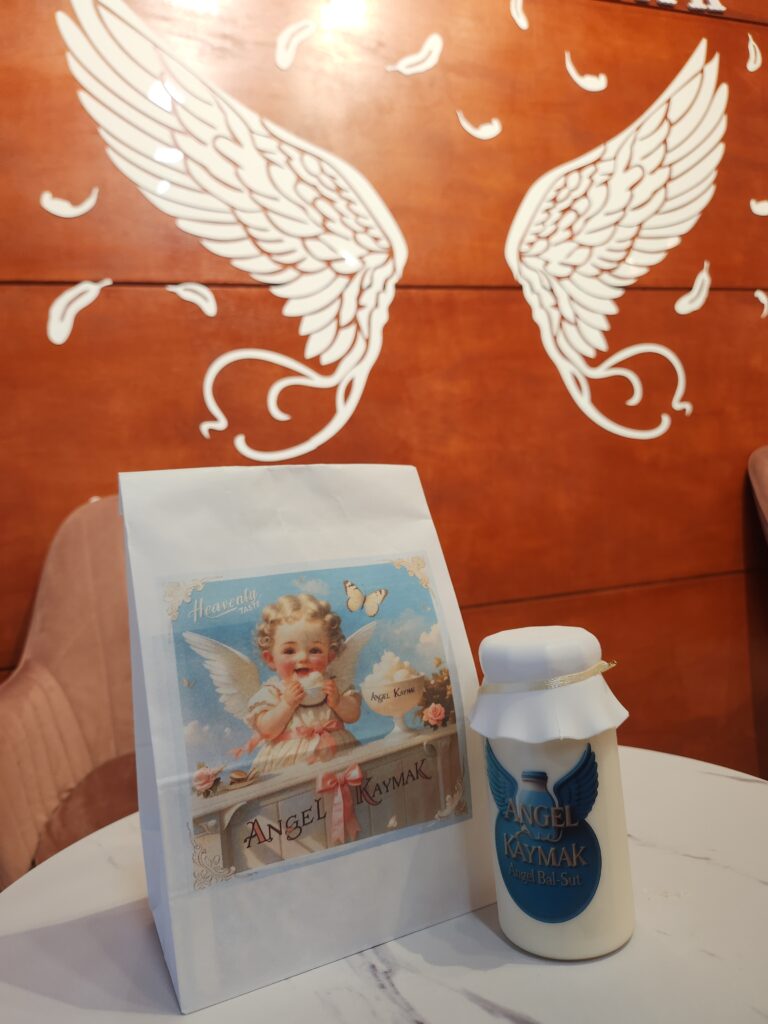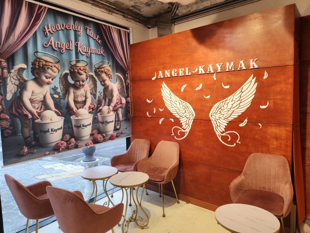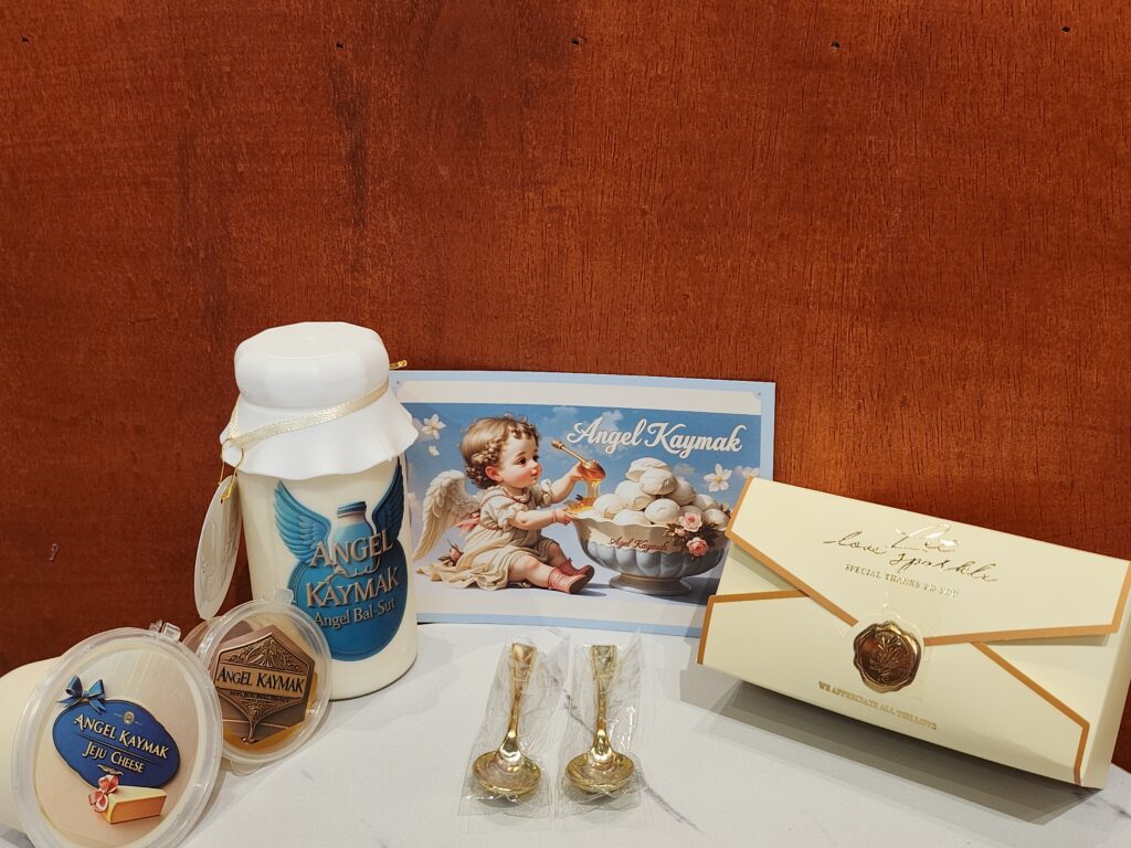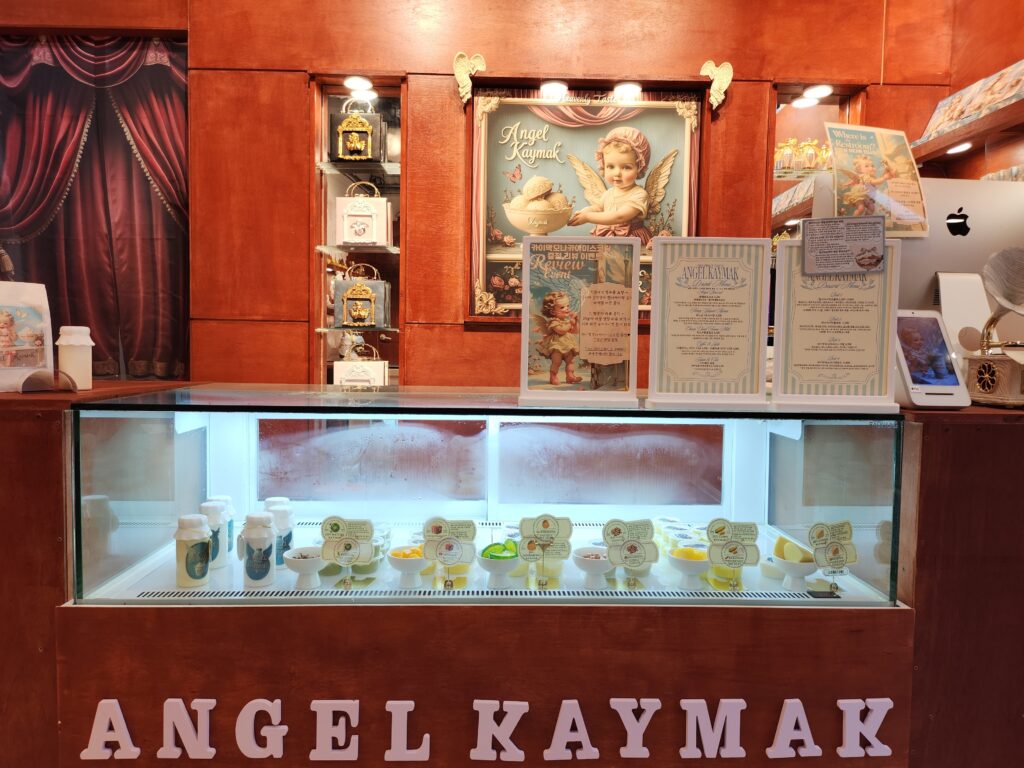 천사카이막을 주문하기 위해 카운터로 다가서서 주변을 둘러보자 그 생각은 한 번 더 들었는데요. 선물용 포장 박스, 그리고 천사 카이막이 그려진 각종 그림들, 음식을 먹을 때 맛있게 먹는 방법이 적힌 종이까지 감성을 자극하지 않는 부분이 하나도 없었고 그야말로 감성이 흐르는 강에 온 듯 한 기분이 들기도 했습니다.