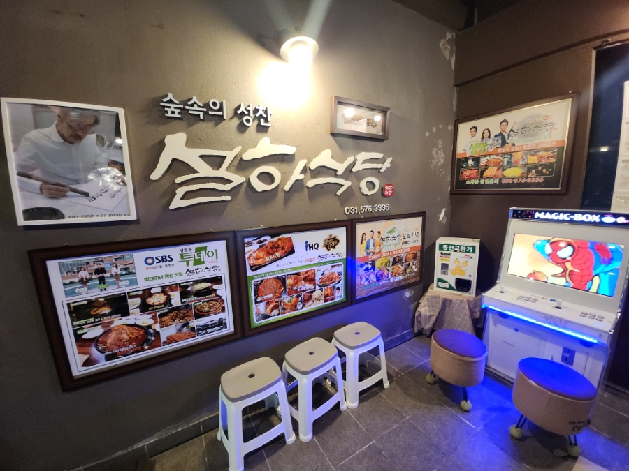 평소에 웨이팅이 많은 식당인 만큼 설하식당 앞에는 웨이팅을 하면서 기다릴 수 있는 공간이 따로 마련되어 있었는데, 옛 시절이 생각나는 게임기부터 아이들이 즐길 수 있는 여러가지 흥미로운 요소들이 있어서 기다리는 시간마저 즐겁게 보낼 수 있다는 것 또한 장점이었습니다.