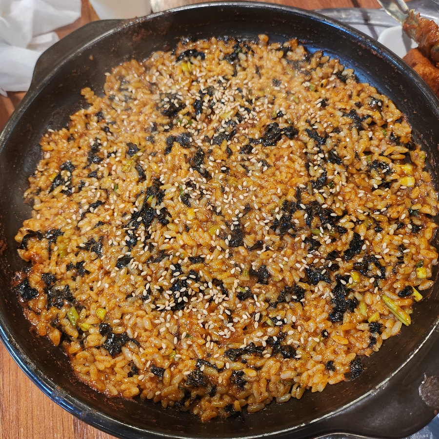 볶음밥을 볶아주는 철판 역시 열기가 매우 전도가 잘 되는 편이라서 누룽지를 만들어먹는 것도 매력적이었고 조금 남아 있는 갈비찜 소스를 더해 볶음밥과 갈비찜에 매력을 더해 먹는 방법도 정말 잘 어울렸습니다.