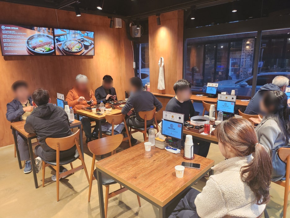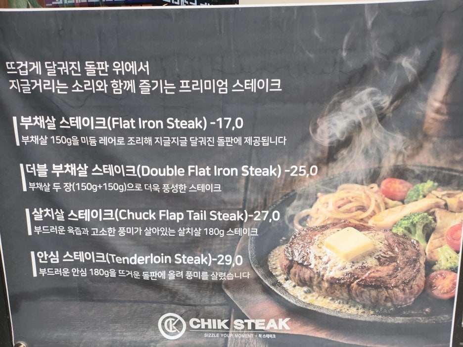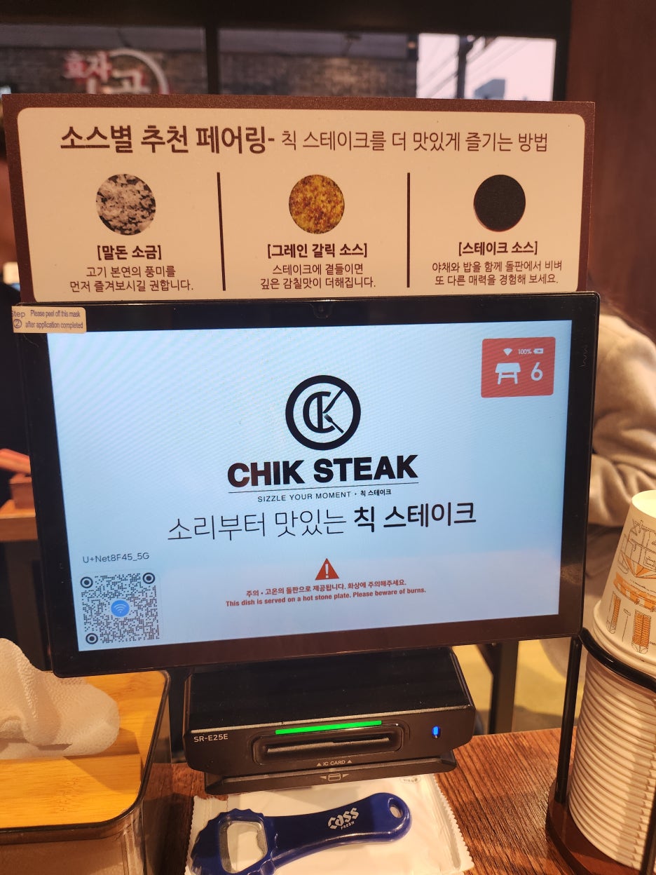 저희가 방문할 때는 저녁 시간 보다 조금 이른 시간에 방문했는데 칙스테이크 내에는 이미 사람이 가득 차 있는 것을 보며 그 인기를 실감할 수 있었습니다. 내부에는 많은 사람이 이용할 수 있을 정도의 넓은 자리가 있지는 않았지만, 데이트를 위해 방문하거나 개인적으로 스테이크가 먹고 싶을 때 방문 방문하면 편안하게 먹을 수 있는 자리를 만나볼 수 있었습니다.