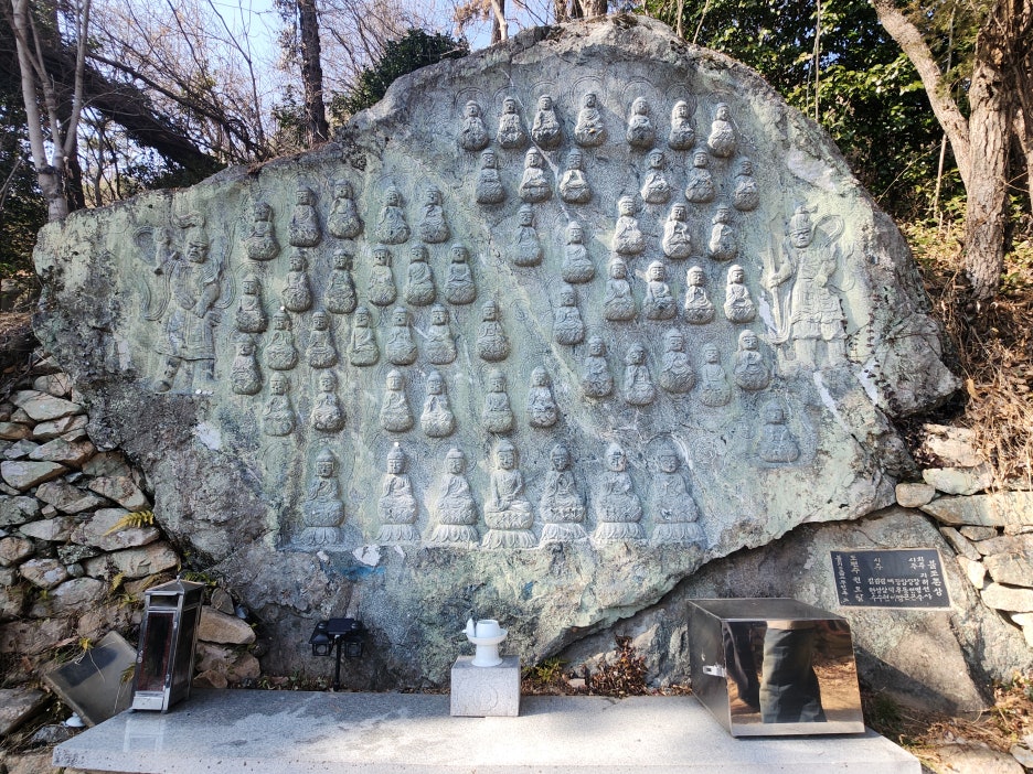 금둔사를 둘러보다 보면 이처럼 작은 불상들이 하나의 바위에 작품처럼 만들어진 것을 찾아볼 수 있었는데 이 위에는 금전사를 방문하는 사람이 소원을 바라며 동전을 불상 위에 올리고 기도를 하는 장면을 어렵지 않게 볼 수 있었습니다.