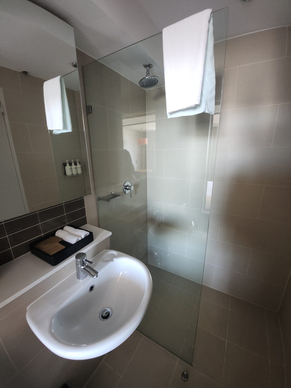 The bathroom was also quite clean, and the shower area was steps away, which was a nice touch, as it prevented water from overflowing after a shower. One minor disappointment was that the North Sydney Harbourview Hotel’s showerhead sprayed water from above, so I couldn’t use my own shower filter.