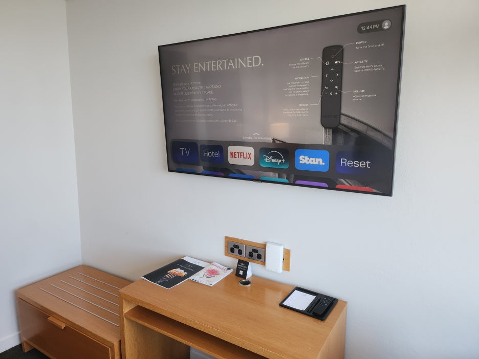 The TV was a variety of programs like Netflix, but I don’t think I ever thought about watching TV while staying at the North Sydney Harbourview Hotel. It could be that I was traveling and arriving late, but the view was even more picturesque than what was on TV, and I was so absorbed in the view of the glittering Sydney Harbour Bridge and the city outside the window.