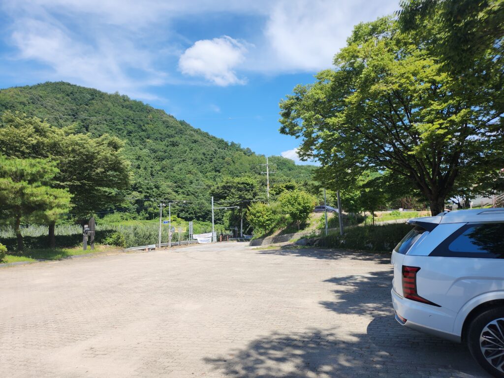 멋진 비경을 볼 수 있는 순흥저수지는 캠프장으로 가는 길 중턱에서 만날 수 있는 데크길을 따라 걸어가야 만날 수 있는데, 처음에는 주차할 곳이 마땅치 않다는 생각이 먼저 들었습니다. 하지만 좀 더 올라가다보면 영주시여우골글램핑장과 트래킹하는 사람을 위한 주차 공간을 만날 수 있습니다. 위의 링크를 클릭하면 바로 확인해 볼 수 있는 이 장소는 사람들이 많이 이용하지 않아서 우리가 갈 목적지와 상당히 가까워서 꼭 이용하시는 것을 권해드리고 싶습니다.